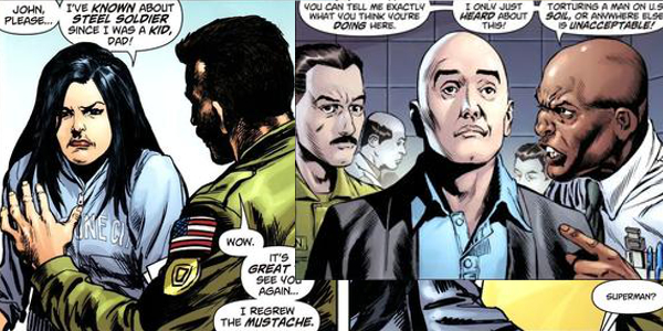 The story is . . . there is a story, I suppose. Superman is fighting the corruption of Metropolis (because they needed to steal something from Batman) and an alien invades. And Lex is there and he looks horrible but that’s not his fault; all the characters looked horrible. There are flashbacks to Krypton. Steel shows up somewhere, that part was rather badass. Then, before the story line where Metropolis is bottled like Kandor and the Collector attacks Earth is finished, we’re given a whole new story! It is just as uninteresting and involves Superman being poisoned by Kryptonite in his memories or something and a team of heroes from the future needs the past Superman to save him. Really, it’s not even interesting to read and it’s even more unpleasant to look at.