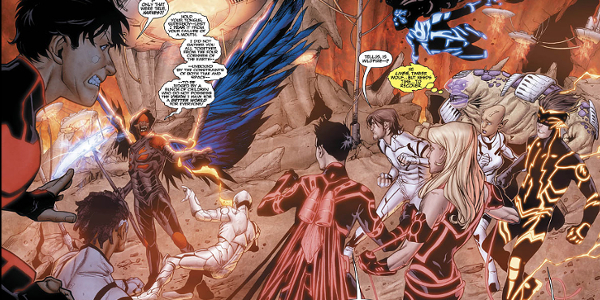 Which brings us to the plot. If you can force yourself through the comic we know that there are bad guys who want to capture teen heroes and use them to capture other young heroes and in a big plot twist it turns out they’re transported to “The Culling”, an empty space where everyone dresses like Tron, and are forced to fight each other, ala The Hunger Games. This is so that some guy called Harvest (on, clever name! Did he decide his entire identity by forcing young heroes to fight so he could use them in his army?) can take the best of the best for his Ravagers. It seriously reads like a horrible cross-universe fanfic.
